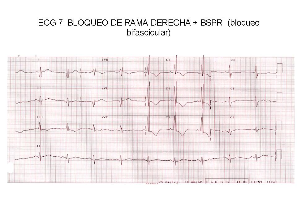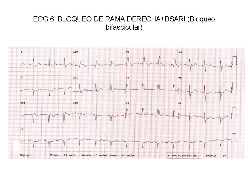 En DI y aVL se registra un complejo rS y en DII, DIII y aVF un complejo qR con ondas q inferiores a 0,03 seg. La onda R en DIII es igual o superior a la onda R en DII.