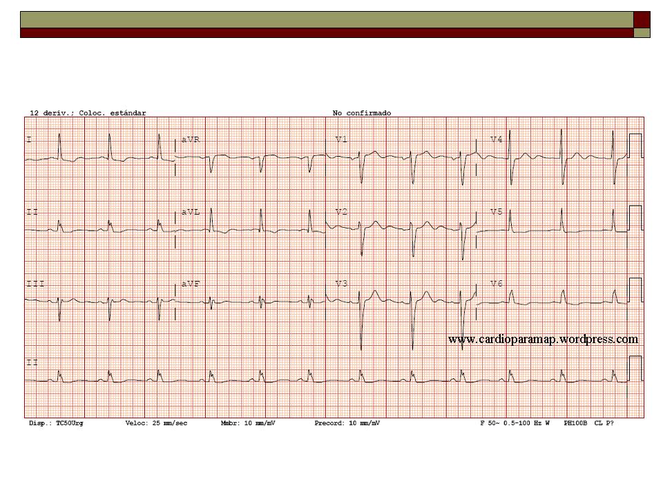 Y esto es lo que ocurrió con Francisca, una mujer de 78 años con antecedentes de HTA, que es traida a Urgencias por malestar general, temblores, vómitos, objetivándose fiebre de hasta 40º. En analíticas presentaba leucocitosis con neutrofilia, deterioro de función renal leve con respecto a la basal, PCR y lactato mínimamente elevados, asi como una primera TnI de 0,6 que luego se elevó hasta 1,4. RX de tórax poco valorable con infiltrado perihiliar más sugerente de ICC que de infiltrado. ECG anodino con onda T negativa en I, avL, V5, V6, presente a veces en casos de HVI
