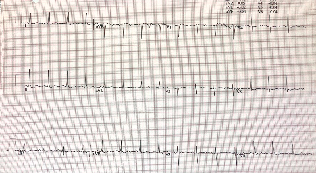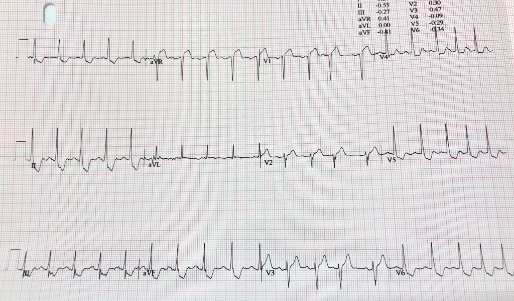 Cuando llega a Urgencias, le había desaparecido el dolor y el ECG era este